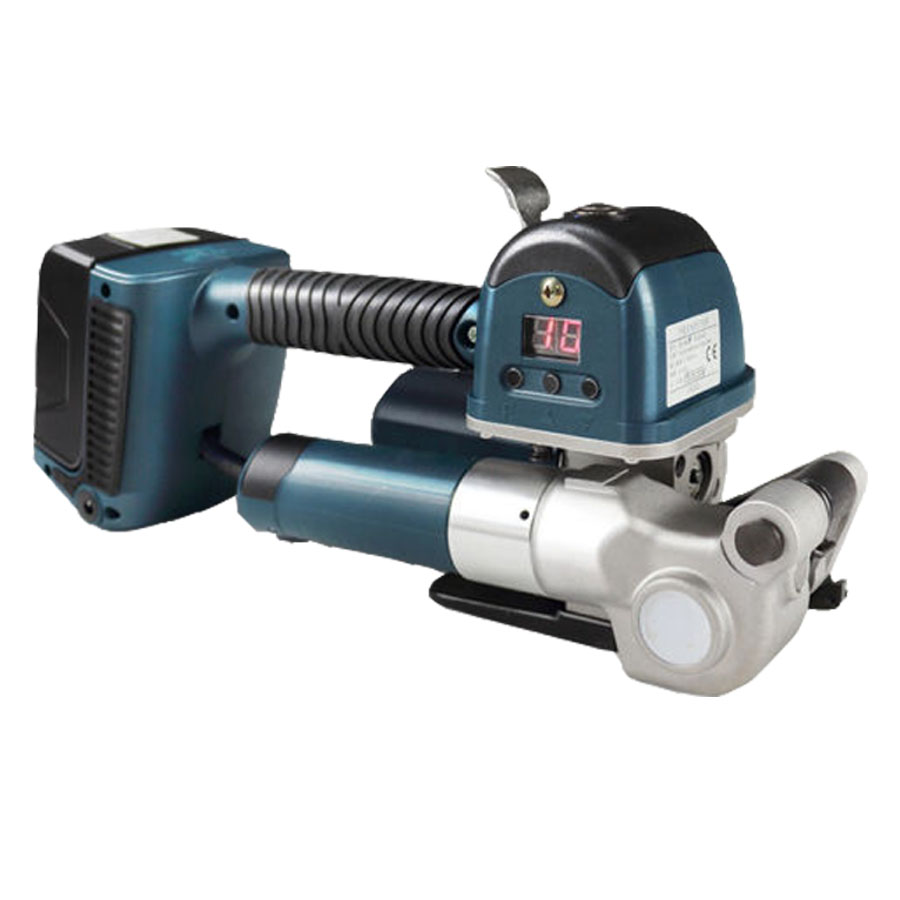Pol-avtomatski baterijski spenjalec (avtomatsko zategna in spoji trak, da trak odrežete pa potisnete ročico). Varen in enostaven za uporabo Ugoden in zanesljiv Lahko se uporablja za vertikalno in horizontalno povezovanje Hitro polnjenje Izjemno lahek (3.4 kg z baterijo). Lahko se uporablja za PET in PP povezovanje Ne potrebuej sponk pri povezovanju
